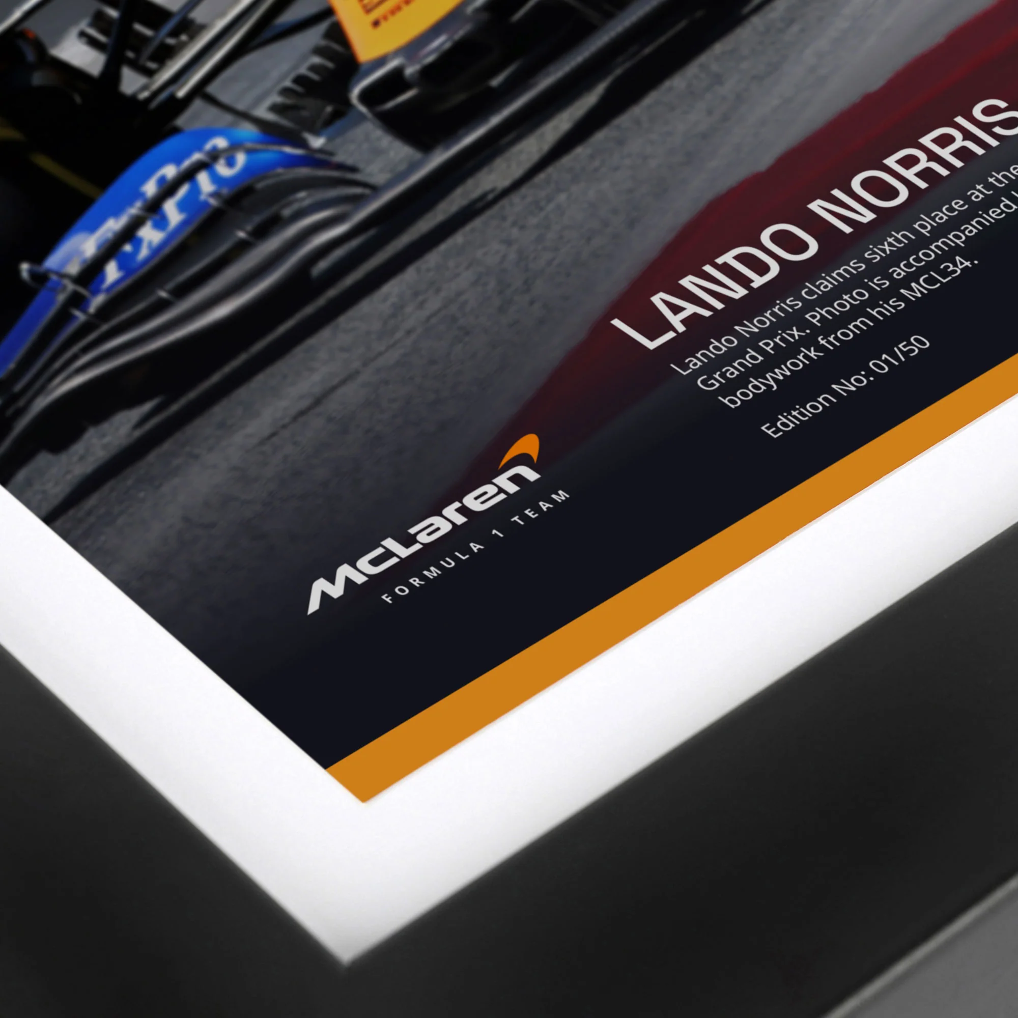 Own your very own piece of where this journey started. Own a bodywork display that shows Lando Norris at his very best, in 2019.