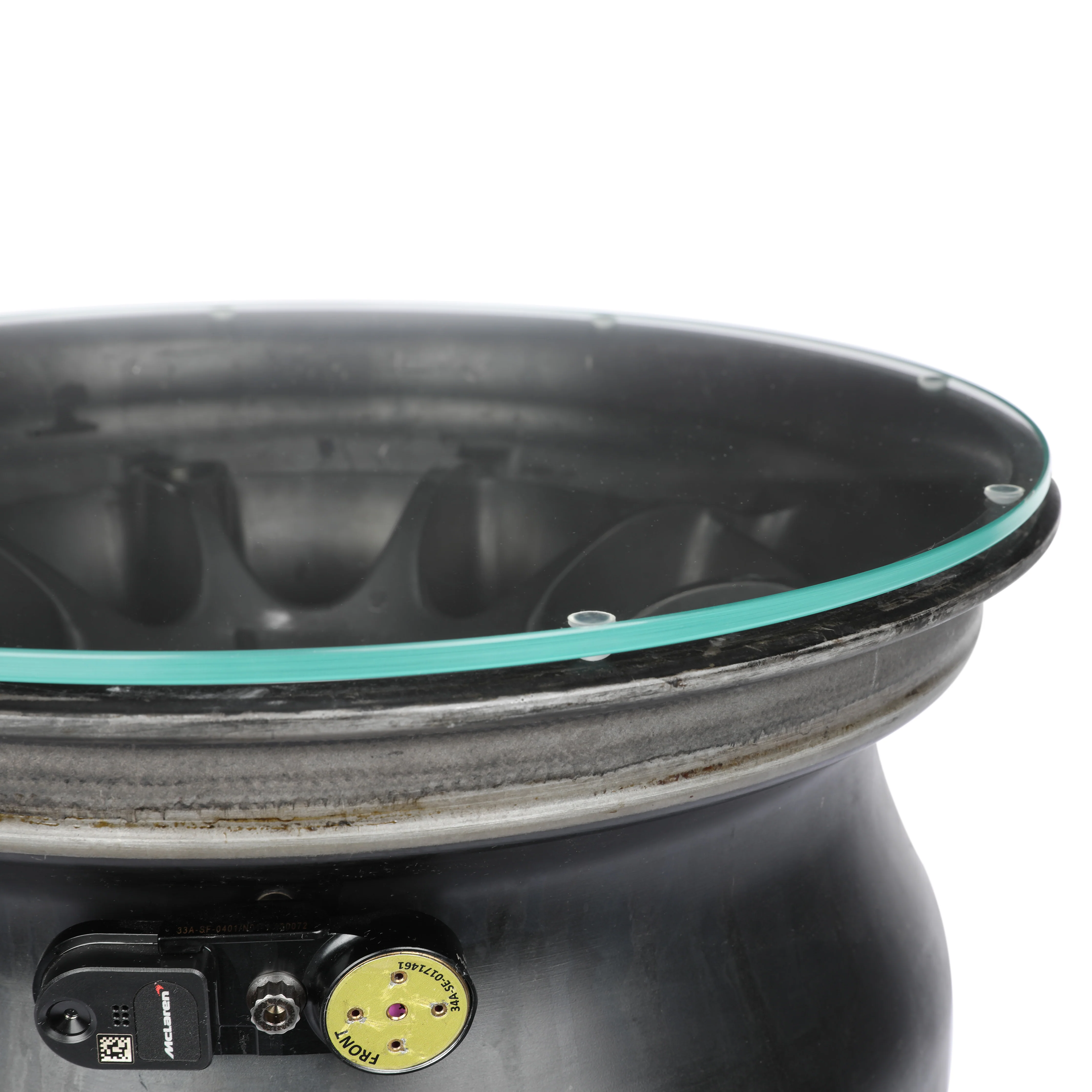 McLaren fans have the opportunity to celebrate the career of Lando Norris with this race-used wheel rim table. This wheel rim was used on Lando Norris’ MCL35M at the 2021 Italian Grand Prix and has been repurposed into a bespoke piece of furniture for your collection.