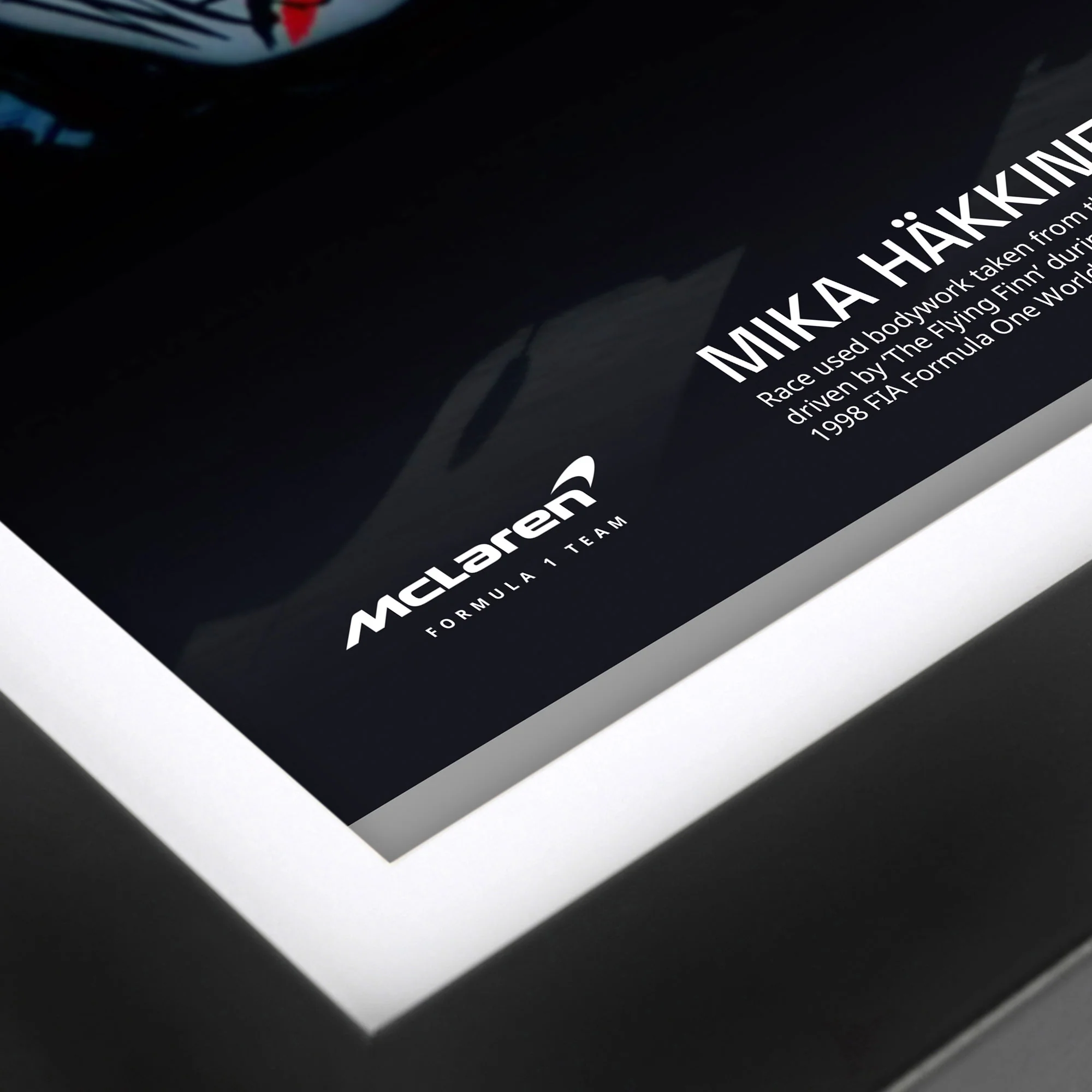 Relive the excitement that unfolded on the tracks for the Flying Finn during the 1998 season and own a piece of history from the monumental year for the driver – the year that saw him claim his first World Championship title. This display features a unique piece of Championship-winning bodywork from his McLaren challenger – an extremely rare and sought after item of F1 heritage.
