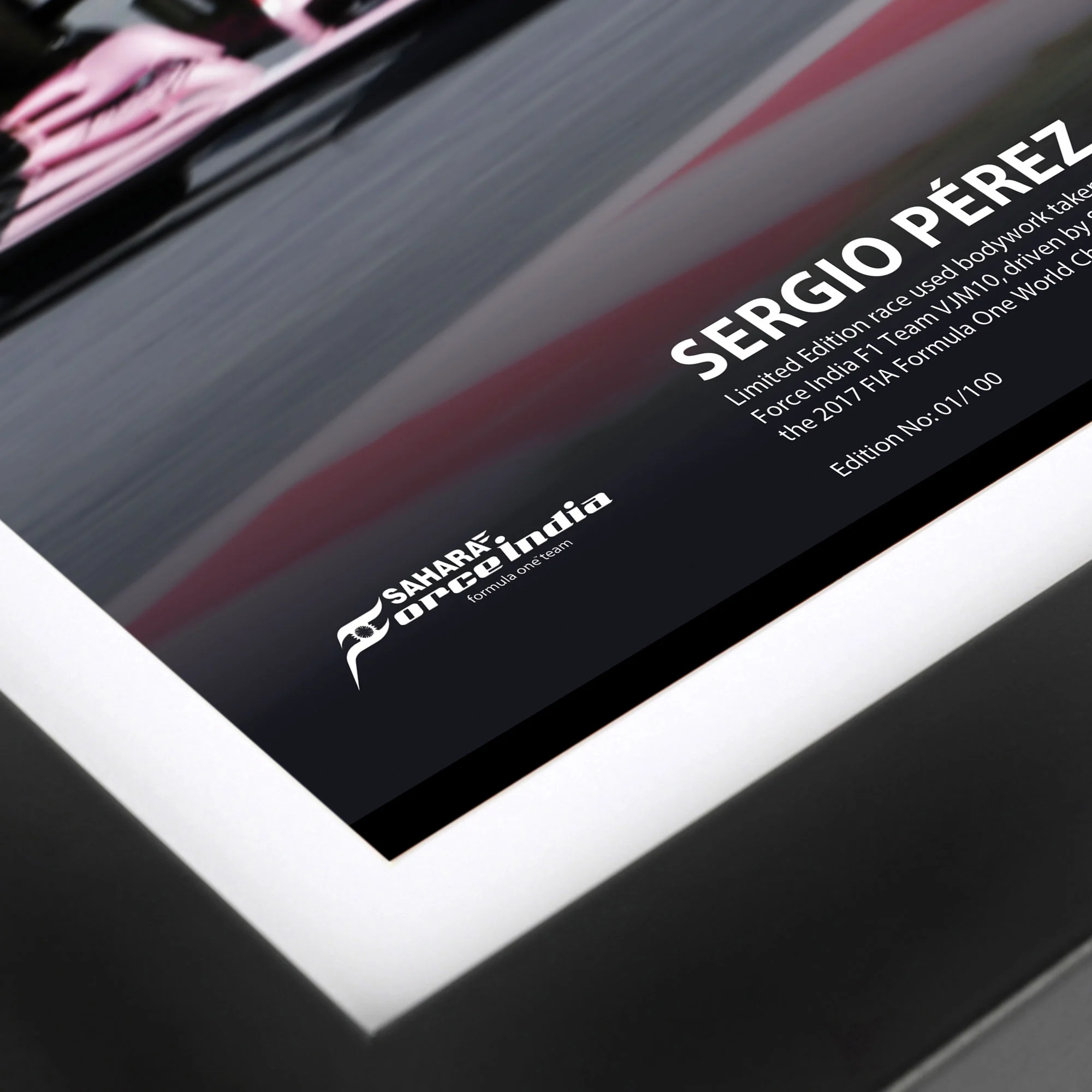 Relive the action from the race with this limited-edition display – featuring authentic bodywork from Sergio Pérez's VJM10 that tackled the 2017 tracks alongside a photo captured in Montmeló as Pérez stormed the circuit. This is your chance to own a piece of history from an incredible F1 legacacy.